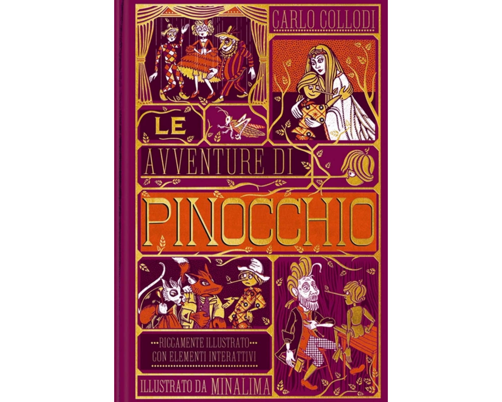 Seguite il burattino più birichino di tutti nel suo rocambolesco viaggio per ritrovare Babbo Geppetto e diventare un "bambino vero". State alla larga del terribile Mangiafoco, da quei furboni del Gatto e della Volpe e da altre strane creature... arricchita da delicate illustrazioni ed elementi interattivi firmati dallo studio MinaLima. Troverete una marionetta di Pinocchio con il naso che si allunga, il teatro dei burattini, la casa della fata Turchina e tanto altro ancora!